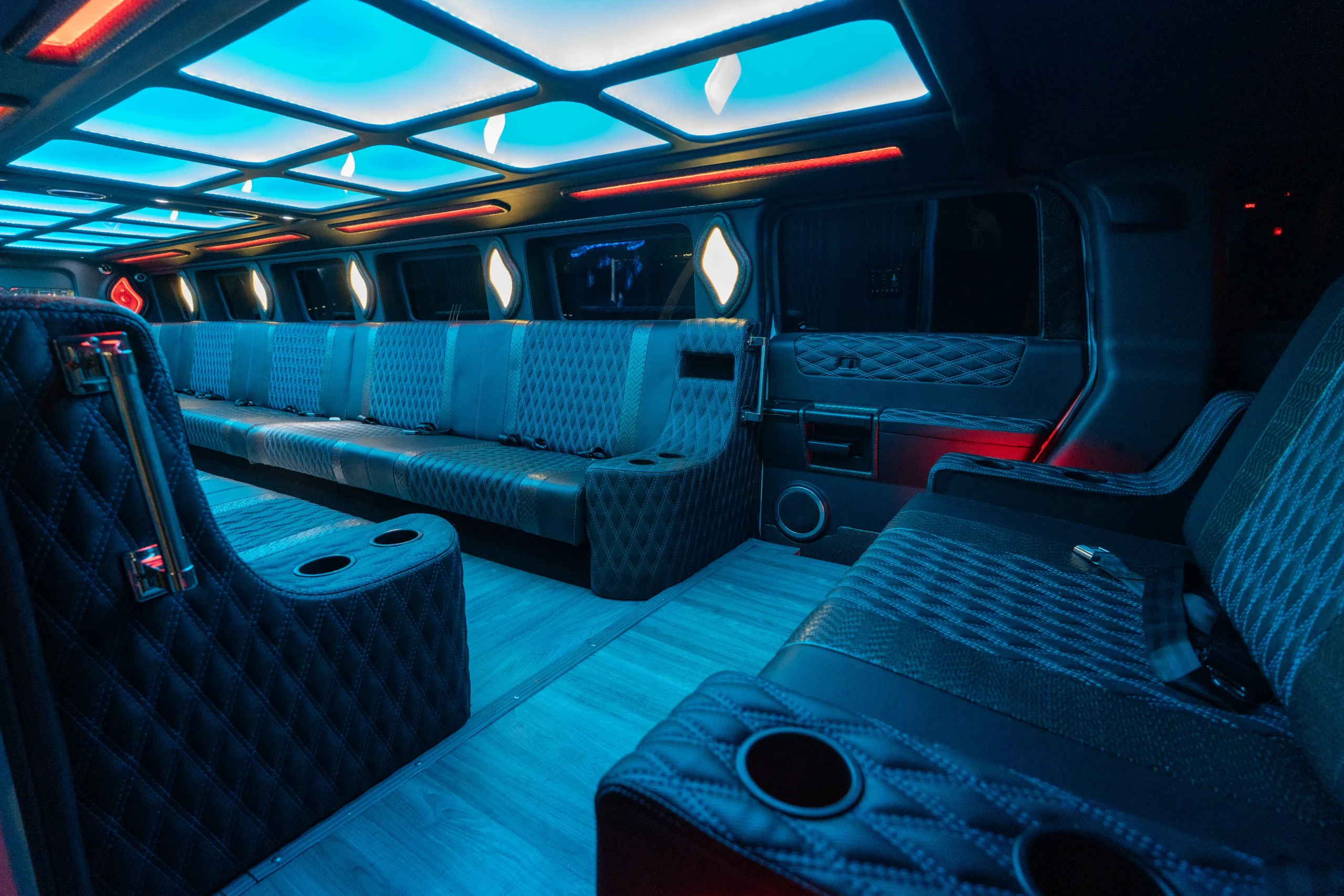 The 20 Passenger Hummer H2 SUV combines bold design with impressive capacity, making it ideal for large groups seeking a commanding presence on the road. Its expansive cabin offers comfortable seating for all passengers, paired with a durable yet refined interior. The vehicle delivers steady, confident performance while navigating highways or city streets. With ample luggage space and a thoughtful layout, it accommodates both people and belongings effortlessly. Striking and reliable, this SUV stands out as a premium choice for group travel with style and authority.